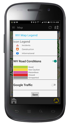 The West Virginia 511 Drive Safe mobile app provides drivers with audible, hands-free, eyes-free traffic alerts from their smartphone.
